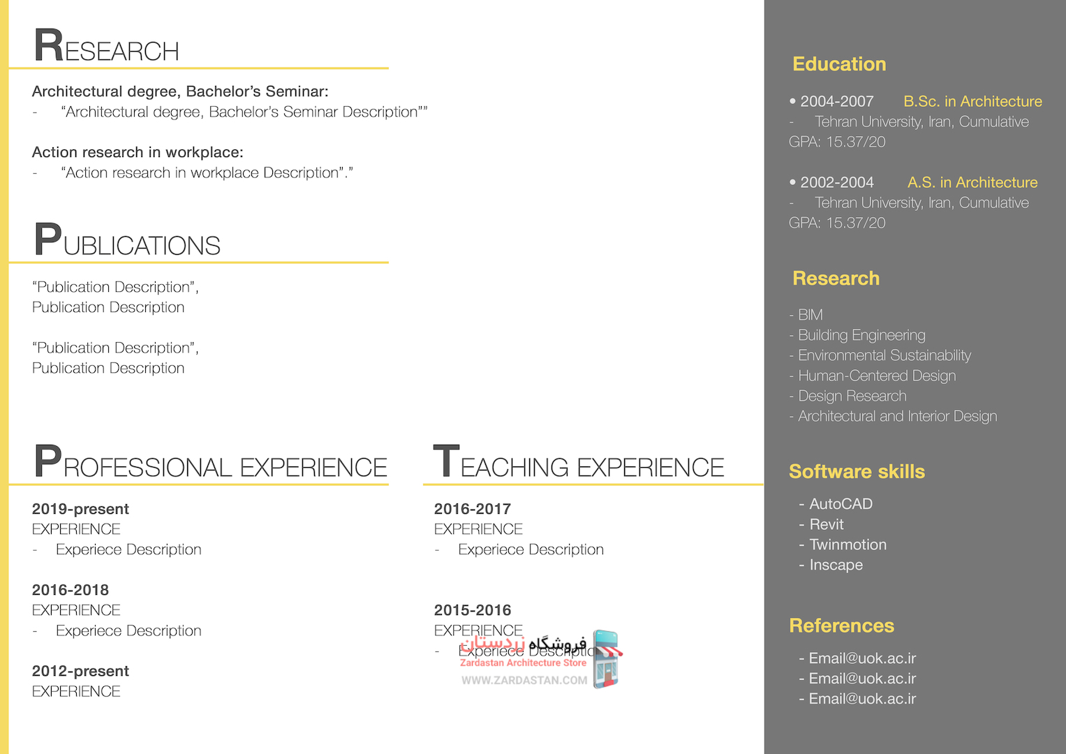 🎓 این پورتفولیو مناسب دانشجویان، معماران و طراحانی است که قصد دارند رزومه ای حرفه ای و چشمگیر ارائه دهند.